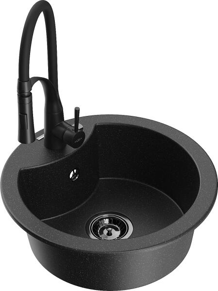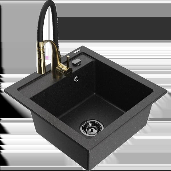 Mexen Diego konyhai mosogató: Gyártó: Mexen Sorozat: Diego Modell: 1 kamrás Beépítés: felülről a munkalapba süllyesztve Méretek: 488x488x167 mm Kamra mélysége: 157 mm Kamra átmérője: 406 mm Lefolyó átmérője: 90 mm Szifon + automatikus leeresztő csavar Anyaga: gránit (80% gránit - kő, 20% gyanta) Sima felület a könnyű tisztítás érdekében: igen Megnövelt ellenállás