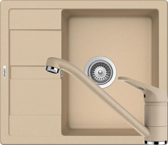 Schock Ronda D-100 Gránit Mosogató 580 x 500 mm Moonstone Cristalite munkalapba beépíthető, egymedencés, megfordítható, csepegtetővel ellátott, ideálisan illeszkedik a minimum 45 cm-es alsószekrényhez. A csaptelep helye előre elkészített, könnyedén áttörhető. A csomagban találja a használati útmutatót, amely részletes leírást ad a csaptelep helyének megfelelő módon t