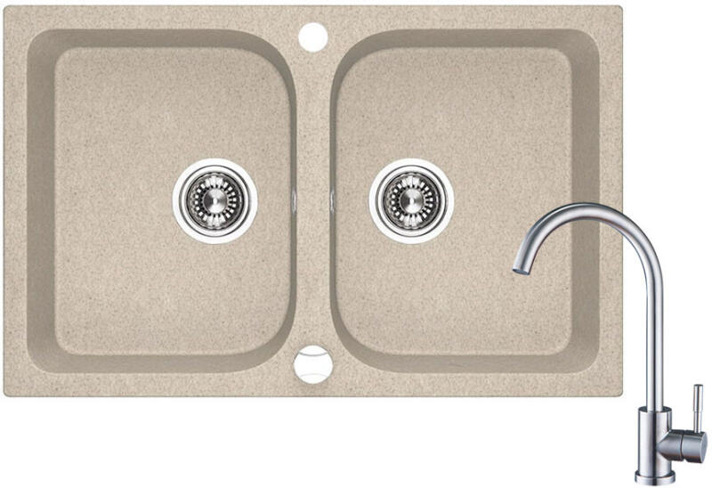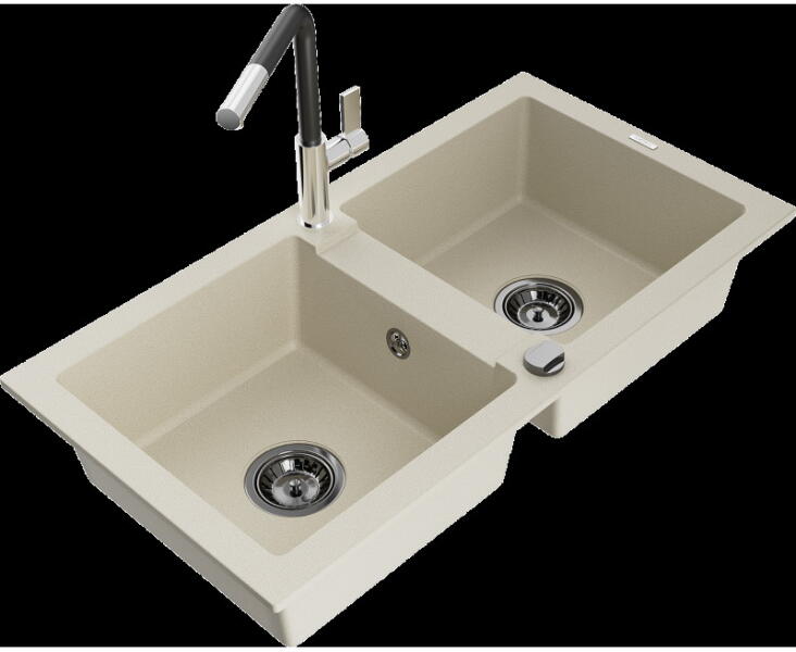Mexen Milo, 1 kamrás gránit mosogató 435x410x171 mm és fekete Telma, bézs, 6505-69-670200-70 Mosogató: Gyártó: Mexen Sorozat: Milo Szín: bézs Mérete: 435x410x171 mm Kamra mélysége: 161 mm Kamra méretei: 375x280 mm Lefolyó átmérője: ø90 mm Típus: 1 kamrás Típus: A pult tetejébe süllyesztett Anyaga: gránit (80% gránit adalékanyag 20% gyanta) Túlfolyó lyuk: igen Lyukak: (