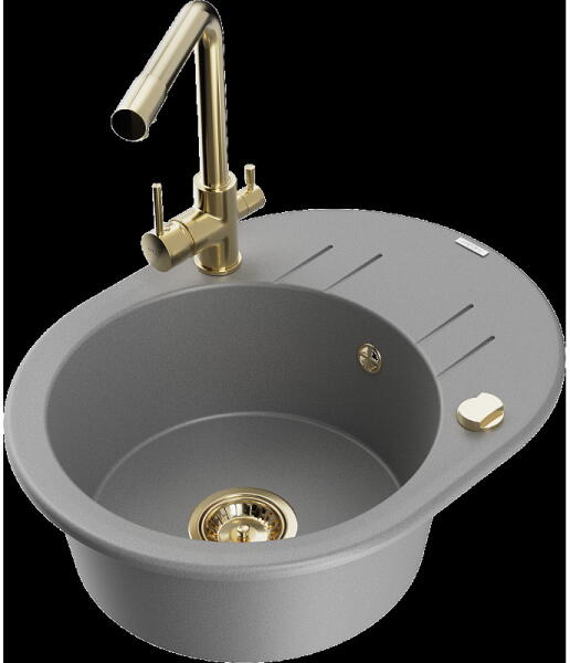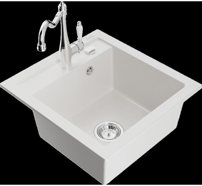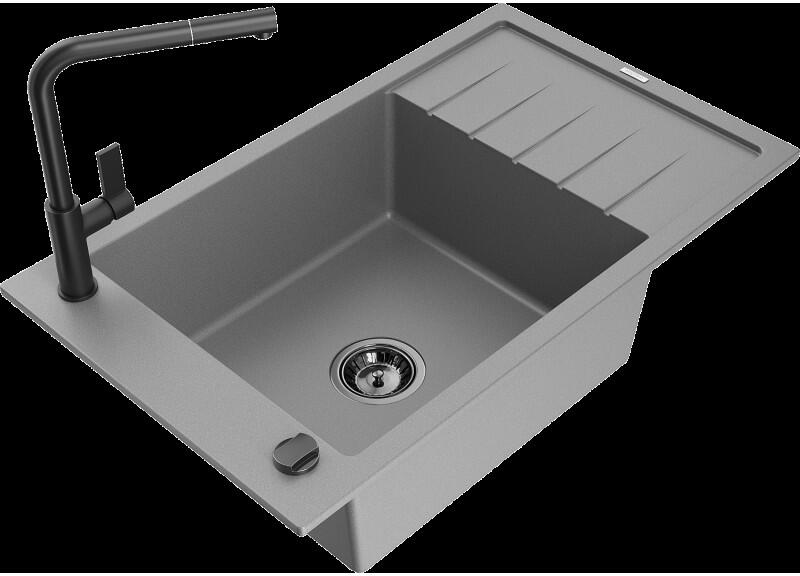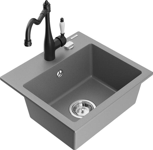 Mexen Milo, gránit mosogató 435x410x171 mm, 1 kamrás és mosogató csaptelep Carla, szürke, 6505-71-670700-70 Milo konyhai mosogató: Gyártó: Mexen Szín: szürke Méretek: 435x410x171 mm Kamra mélysége: 161 mm Kamra méretei: 375x280 mm Lefolyó átmérője: ø90 mm Típus: 1 kamrás Beépítés: felülről a pultba süllyesztve Anyaga: gránit (80% gránit adalékanyag 20% gyanta) Túlfo
