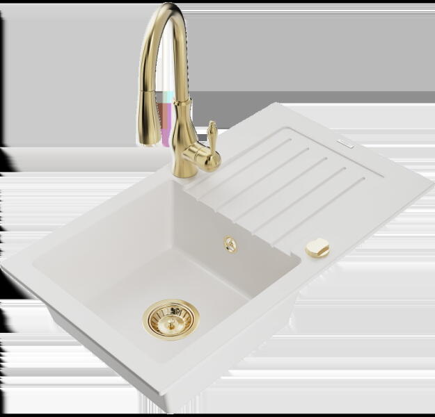 Mexen Gaspar, gránit mosogató 737x475x177 mm, 1,5 kamrás és fekete Rita csaptelep, fekete-arany metál, 6507-75-670300-70 Gyártó: Mexen Sorozat: Gáspár Modell: 1,5-kamrás, rövid leeresztővel Felszerelés: munkalapra Szín: fekete - arany metál Hossza 737 mm Szélesség 475 mm Magasság: 177 mm Kamra mélysége: 167 mm (nagyobb), 107 mm (kisebb) Kamra mérete: 395x272 mm (nagyobb), 375x