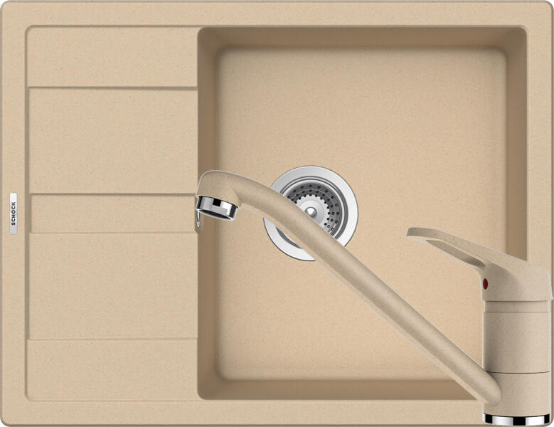Schock Ronda D-100L Gránit Mosogató 650 x 500 mm Moonstone Cristalite munkalapba beépíthető, egymedencés, megfordítható, csepegtetővel ellátott, ideálisan illeszkedik a minimum 50 cm-es alsószekrényhez. A csaptelep helye előre elkészített, könnyedén áttörhető. A csomagban találja a használati útmutatót, amely részletes leírást ad a csaptelep helyének megfelelő módon