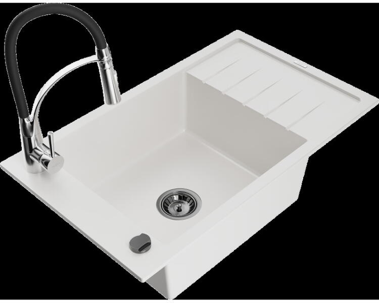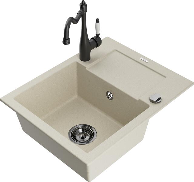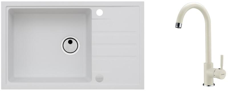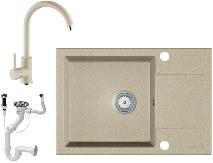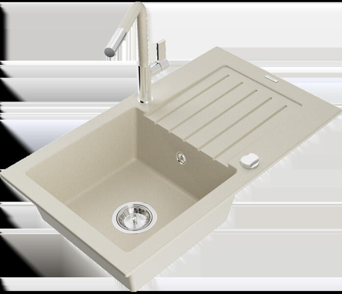 Laneo (EOS) Adria gránit mosogató szett bézs színben. Teljes készlet, ami tartalmazza a magasított csaptelepet és a dugóemelővel ellátott szifon készletet. Méreténél fogva ideális lehet olyan konyhákba, ahol az okos helykihasználás lényeges, viszont szükséges a megfelelő méretű medence és csepegtető is. CSOMAG TARTALMA: - Gránit mosogató szifon készlet dugóemelővel -