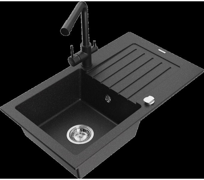 NERO Uno gránit mosogató, ami ideális választás kiméretű konyhákba, ahol fontos a helytakarákos megoldás. Letisztult, szögletes formatervezésének köszönhetően bármilyen stílusú konyha tökéletes alkotóeleme lehet, beépíthető 45 cm széles vagy szélesebb bútorszekrényekbe . Összetétele 80% gránit őrlemény és 20% akril, ami megfelel a szabvány gránit mosogató öss