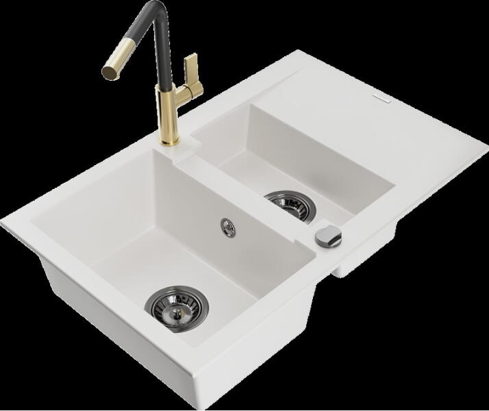 Mexen Gaspar konyhai mosogató: Gyártó: Mexen Sorozat: Gáspár Modell: 1,5-kamrás, rövid leeresztővel Beépítés: felülről a munkalapba süllyesztve Hossz: 737 mm Szélesség: 475 mm Magasság: 177 mm Kamra mélysége: 167 mm (nagyobb), 107 mm (kisebb) Kamra mérete: 395x272 mm (nagyobb), 375x182 mm (kisebb) Lefolyó átmérője: 90 mm Szifon + automatikus leeresztő csavar Anyaga: gráni