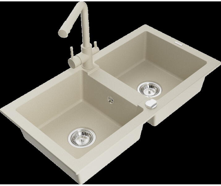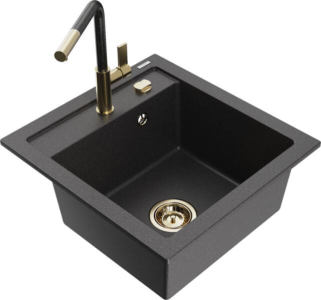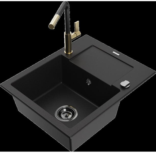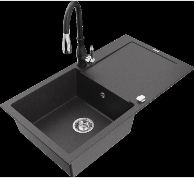 Mexen Elias konyhai mosogató: Gyártó: Mexen Sorozat: Elias Modell: 1 kamrás Beépítés: felülről a munkalapba süllyesztve Méretek: 795x480x200 mm Kamra mélysége: 190 mm Kamra mérete: 465x420 mm Lefolyó átmérője: 90 mm Szifon + automatikus leeresztő csavar Anyaga: gránit (80% gránit - kő, 20% gyanta) Sima felület a könnyű tisztítás érdekében: igen Megnövelt ellenállás