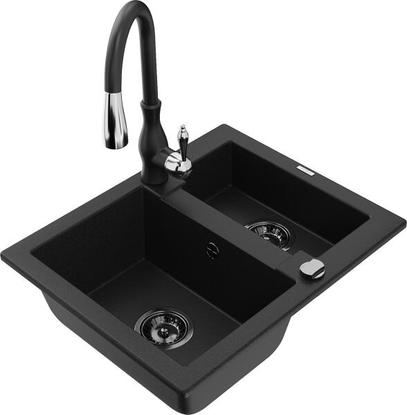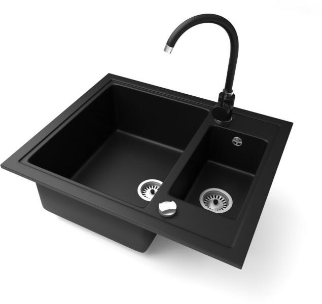 NERO Arriva gránit mosogató, ami több szempontból is nagyszerű választás. Mindössze 60 cm helyet foglal, de tágas medencéjének, és a gyümölcsmosónak és kis perem részének köszönhetően nagyon praktikus. Használhatóságát tovább erősíti az 50 cm-es mérete a fal felé, valamint a fő medence közel 20 cm-es mélysége. A mosogatón 2 lyuk található egymással szemben, ez