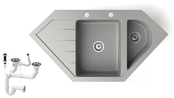 NERO Joker sarok mosogató, ami egyben praktikus és impozáns látvaányelem is a konyhában. Tökéletes választás azokba a konyhákba, ahol a mosogató rész a sarokban lett kialakítva. Szögletes, határozott vonalvezetése nagyszerűen illik modern vagy minimál stílusú konyhákba. A mosogatón 2 lyuk lett kialakítva, egy a csaptelepnek és egy a beépíthető mosogatószer adagolónak