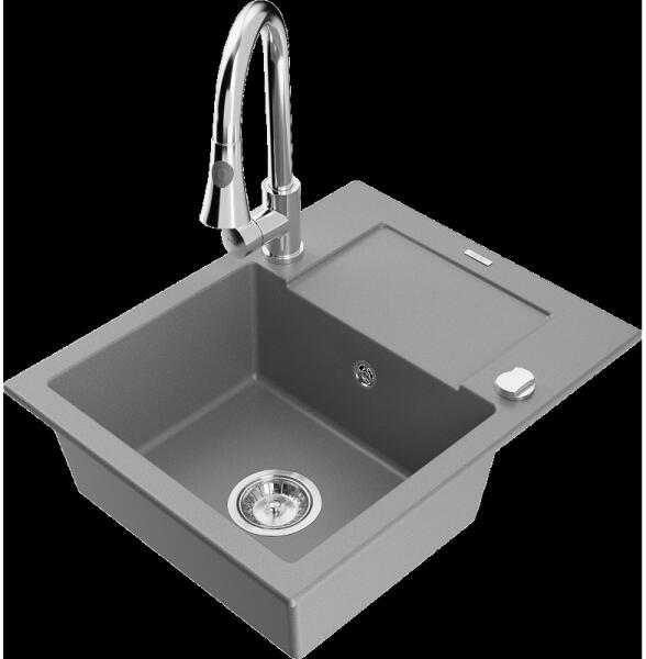 Alveus Rock 80 egymedencés gyümölcsmosós gránit mosogató + Színazonos Alveus normál csaptelep Granital széria Különleges, kiváló minőségű kompozit anyag Munkalapra szerelhető modell 1 medencés + gyümölcsmosós Méret: 595 x 475 mm Medence mélység: 160 mm Minimum szekrény méret: 600 mm Ajándék automata leeresztős szifon Mosogató garancia: 5-év Csaptelep: Kihúzható zuh