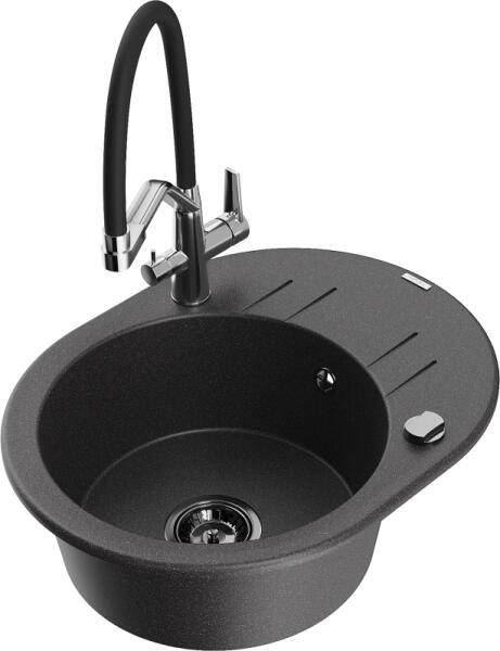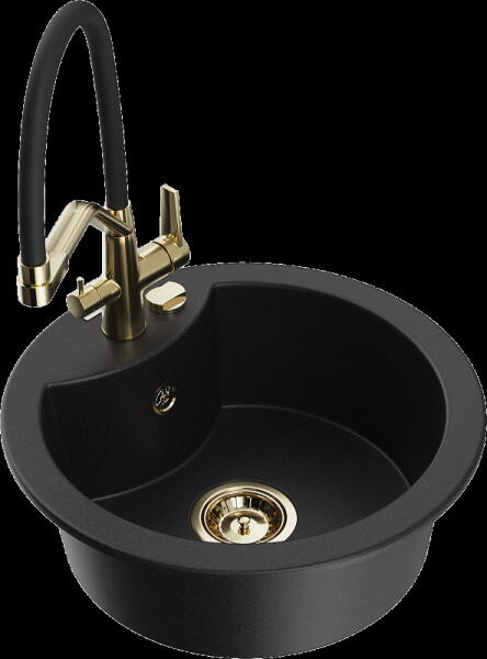Mexen Kevin, gránit mosogató 586x458x190 mm, 1 kamrás és arany fényes csaptelep Rita, fekete, 6517-77-670300-50-B Gyártó: Mexen Sorozat: Kevin Modell: 1 kamrás, rövid leeresztővel Felszerelés: munkalapra Hossza 586 mm Szélesség 458 mm Magasság: 190 mm Kamra mérete: 378x374 mm Kamra mélysége: 175 mm A lefolyó átmérője: Ø 90 mm Szifon + automatikus leeresztő csavar Anyaga: gr