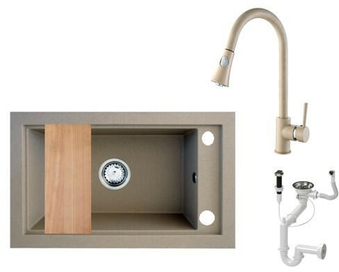 Panama gránit mosogató homokbézs színben, extra nagy medencével. A teljes készlet tartalmazza a mosogatót, a csaptelepet, a szifonkészletet automata dugókiemelővel és egy vágódeszkát. A medence mérete 51,7 x 31,6 cm, amiben szinte bármilyen méretű edény elfér. Modern megjelenésű, letisztult szögletes formavilág jellemzi, kiváló eleme lehet egy minimál vagy modern stílus