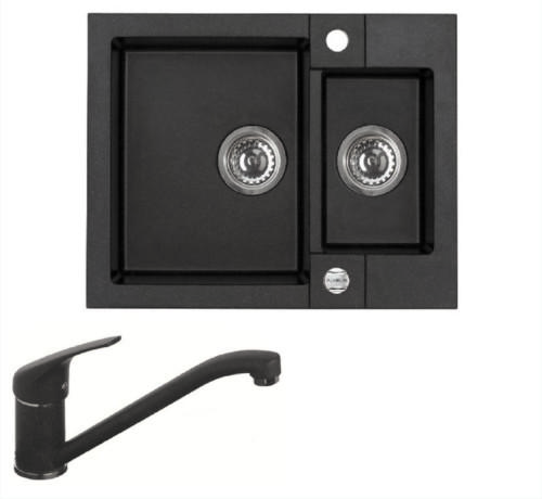 Mexen Carlos, 1,5 kamrás gránit mosogató 582x475x177 mm és Duo mosogató csaptelep, fekete-arany metál, 6518-75-671701-57-B Mexen Carlos konyhai mosogató: Gyártó: Mexen Sorozat: Carlos Modell: 1,5-kamrás Beépítés: felülről a munkalapba süllyesztve Méretek: 582x475x177 mm Kamra mélysége: 162 mm (nagyobb), 102 mm (kisebb) Kamra mérete: 395x272 mm (nagyobb), 375x182 mm (kisebb) Lef