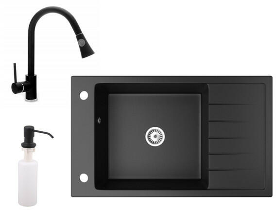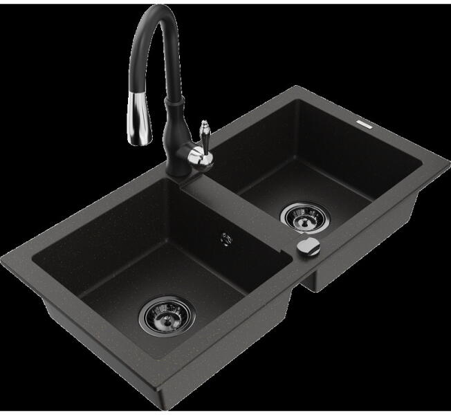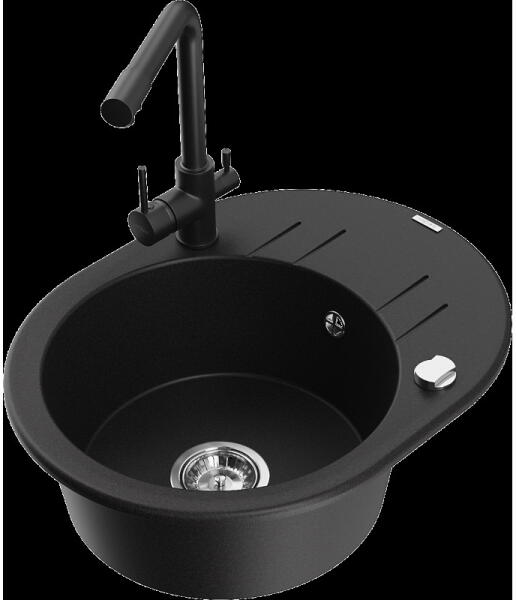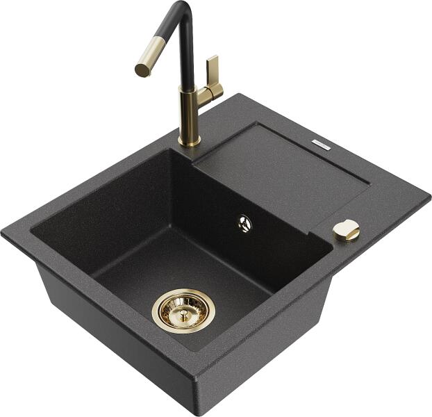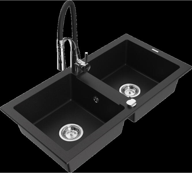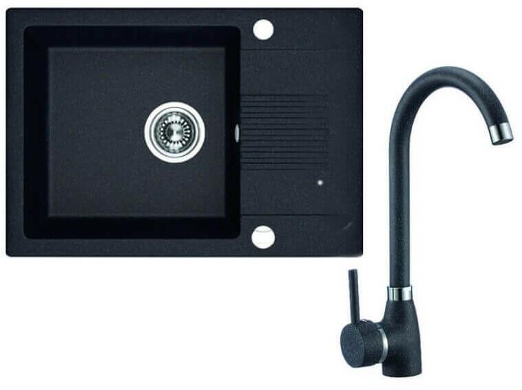 Laveo Ceilia, 1 kamrás gránit mosogató 650x440x185mm + magas mosogató csaptelep, fekete, LAV-SJCG713T A gránit mosogatók jelenleg egy keresett konyhai mosogatótípus, köszönhetően kiváló funkcionális és esztétikai tulajdonságaiknak - széles szín- és formaválasztéknak. Az anyag - gránit, amelyből a mosogatók készülnek - biztosítja a magas hőmérséklettel, karcolásokkal
