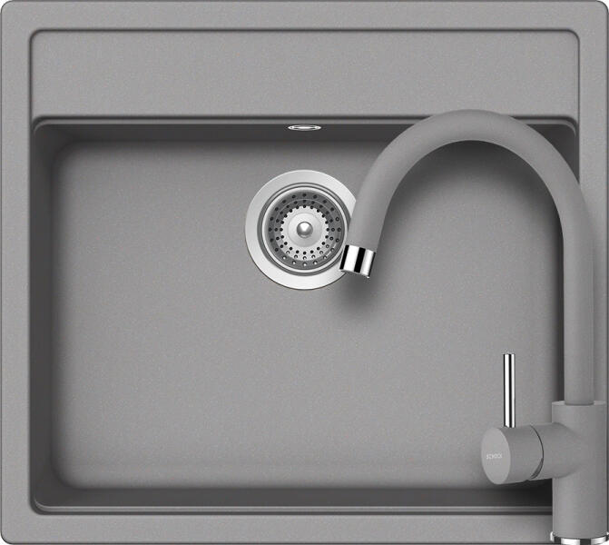 Schock Nemo N-100 konyhai mosogatótálca Cristalite Croma 570 x 510 mm, gránit, hagyományos beépítés, szürke munkalapba beépíthető, egymedencés, csepegtető nélküli, ideálisan illeszkedik a minimum 60 cm-es alsószekrényhez. A csaptelep helye előre elkészített, könnyedén áttörhető. A csomagban találja a használati útmutatót, amely részletes leírást ad a csaptelep hely