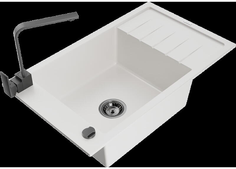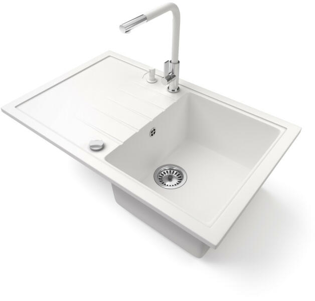 NERO Eris gránit mosogatótálca, ami 78 x 50 cm-es méretével, valamint a 20 cm mély medencével minden igényt kielégít, mégsem foglal sok helyet a konyhai munkafelületből. Markánsan bordázott, de letisztult csepegtető rész és körben vízvető perem kapott helyet. A mosogatón 2 lyuk található, egy a csaptelepnek és egy a mosogatószer adagolónak vagy az automata dugókiemelőn