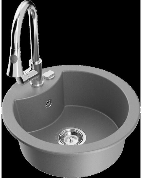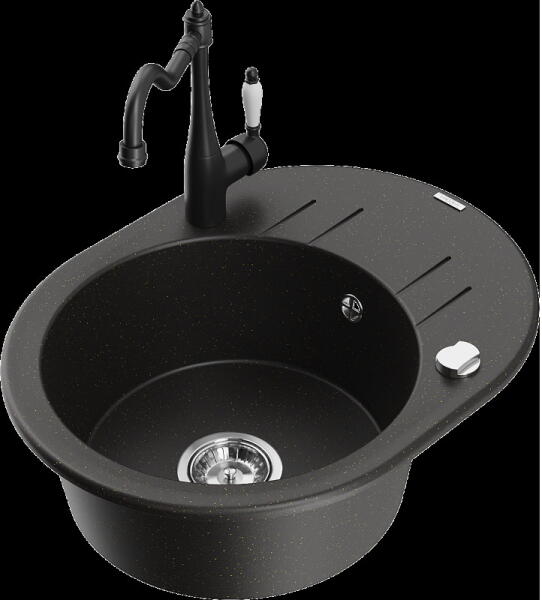 Mexen Diego konyhai mosogató: Gyártó: Mexen Sorozat: Diego Modell: 1 kamrás Beépítés: felülről a munkalapba süllyesztve Méretek: 488x488x167 mm Kamra mélysége: 157 mm Kamra átmérője: 406 mm Lefolyó átmérője: 90 mm Szifon + automatikus leeresztő csavar Anyaga: gránit (80% gránit - kő, 20% gyanta) Sima felület a könnyű tisztítás érdekében: igen Megnövelt ellenállás