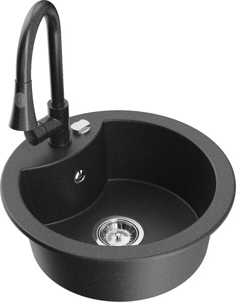 Mexen Diego konyhai mosogató: Gyártó: Mexen Sorozat: Diego Modell: 1 kamrás Beépítés: felülről a munkalapba süllyesztve Méretek: 488x488x167 mm Kamra mélysége: 157 mm Kamra átmérője: 406 mm Lefolyó átmérője: 90 mm Szifon + automatikus leeresztő csavar Anyaga: gránit (80% gránit - kő, 20% gyanta) Sima felület a könnyű tisztítás érdekében: igen Megnövelt ellenállás