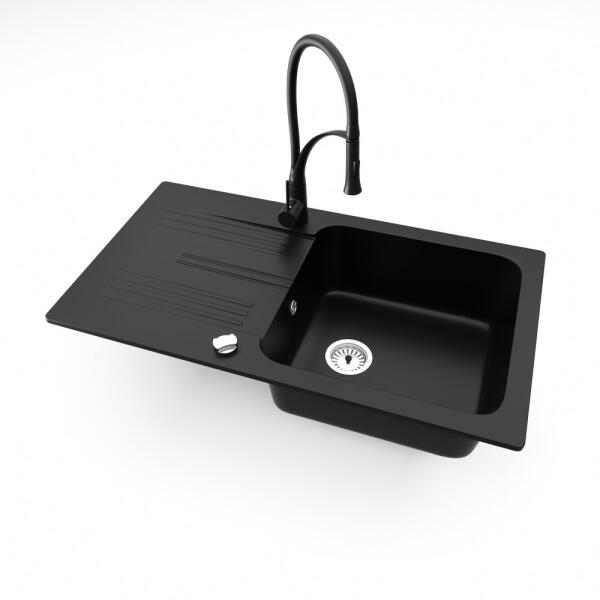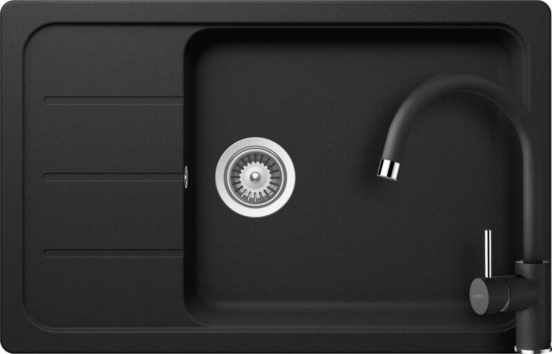NERO Malta gránit mosogató, ami egyesíti a praktikus megoldást a bőséges helykínálattal és a harmonikus designnal. Méretes, 36 x 38 cm-es, medencével és kellően nagy csepegtető résszel rendelkezik, arányosan kialakítva. Minden igényt kielégít ami egy mosogatótól elvárható, amihez mindössze 78 cm hely szükséges. Egyenes és hajlított vonalvezetés harmonikus keveréke je
