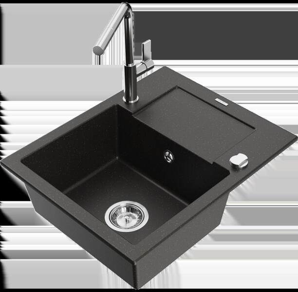 NERO Arriva gránit mosogató, ami több szempontból is nagyszerű választás. Mindössze 60 cm helyet foglal, de tágas medencéjének, és a gyümölcsmosónak és kis perem részének köszönhetően nagyon praktikus. Használhatóságát tovább erősíti az 50 cm-es mérete a fal felé, valamint a fő medence közel 20 cm-es mélysége. A mosogatón 2 lyuk található egymással szemben, ez