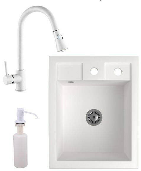 NERO Parma amely kisméretű, de mégis nagyon tágas gránit mosogató, csapteleppel, szifonkészlettel és beépíthető mosogatószer adagolóval, fehér színben . Egyik nagy előnye, hogy már egy 40 cm széles konyhabútor elembe is beépíthető, az 50 cm-es mélysége kellő méretet biztosít. A medence mélysége is nagynak számít, 18 cm. Tökéletes bármilyen stílusú konyhába ahol