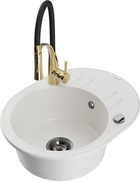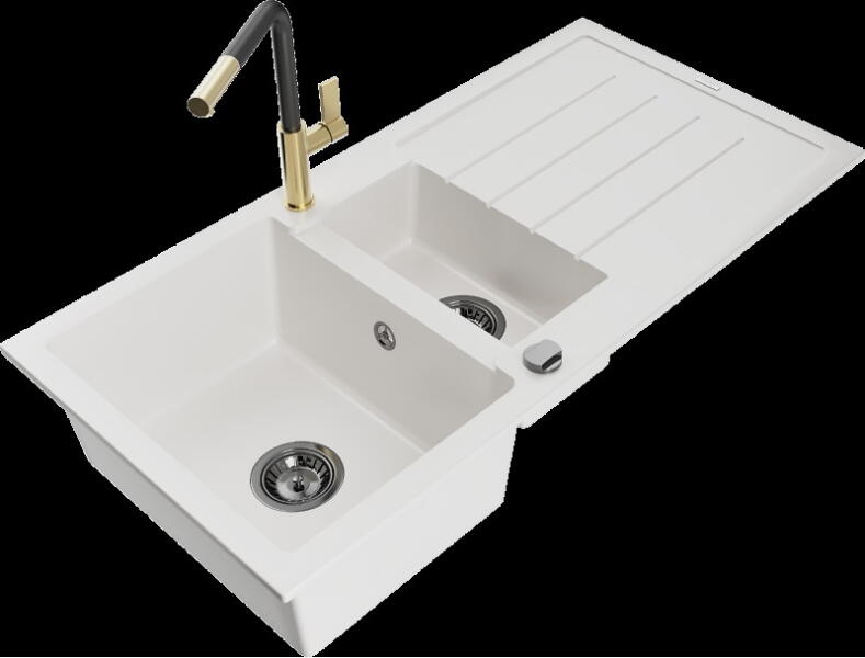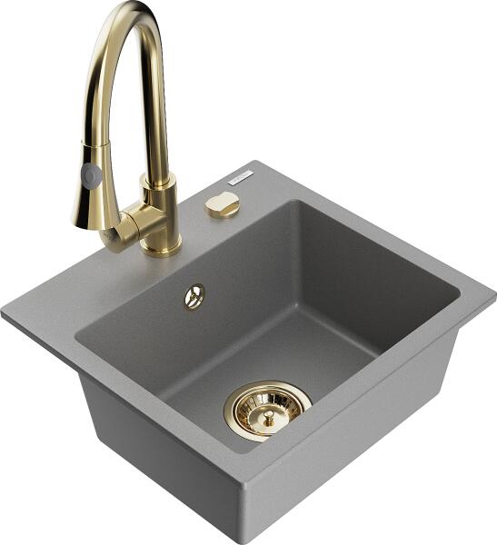 Mexen Milo konyhai mosogató: Gyártó: Mexen Sorozat: Milo Modell: 1 kamrás Beépítés: felülről a munkalapba süllyesztve Hossza 435 mm Szélesség 410 mm Magasság: 171 mm Kamra mélysége: 161 mm Kamra mérete: 375x280 mm Lefolyó átmérője: 90 mm Szifon + automatikus leeresztő csavar Anyaga: gránit (80% gránit - kő, 20% gyanta) Sima felület a könnyű tisztítás érdekében: igen