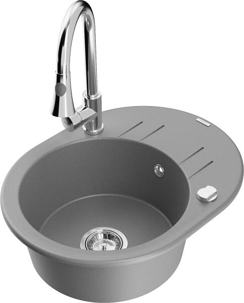 Mexen Vito, gránit mosogató 490x520x210 mm, 1 kamrás és mosogató csaptelep Carla, szürke, 6503-71-670700-70 Vito konyhai mosogató: Méretek: 520x490x210 mm Kamra mélysége: 200 mm Kamra méretei: 410x360 mm Lefolyó átmérője: ø90 mm Szín: szürke Típus: 1 kamrás Típus: a pultba való beágyazáshoz Anyaga: gránit (80% gránit adalékanyag 20% gyanta) Túlfolyó lyuk: igen Lyukak: