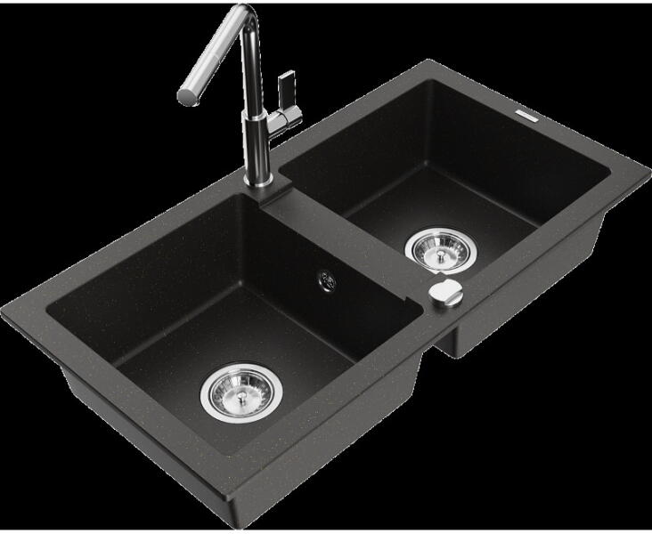 Tomas konyhai mosogató: Gyártó: Mexen Sorozat: Tomas Modell: 2-kamrás csepptálca nélkül Beépítés: felülről a munkalapba süllyesztve Hossz: 800 mm Szélesség: 500 mm Magasság: 190 mm Kamra mélysége: 180 mm (nagyobb), 180 mm (kisebb) Kamra mérete: 440x387 mm (nagyobb), 370x303 mm (kisebb) A lefolyó átmérője: Ø 90 mm Szifon + automatikus leeresztő csavar Anyaga: gránit (80% g