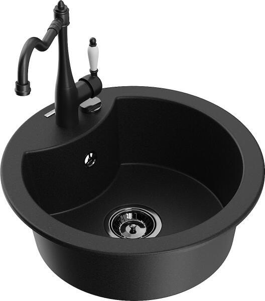 Mexen Diego, gránit mosogató 488x488x167 mm, 1 kamrás és mosogató csaptelep Carla, fekete, 6512-77-670700-70-B Gyártó: Mexen Sorozat: Diego Modell: 1 kamrás Beépítés: felülről a munkalapba való beágyazáshoz Fekete szín Felület típusa : sima Hossza 488 mm Szélesség 488 mm Magasság: 167 mm Kamra mélysége: 157 mm Kamra mérete: 406 mm Lefolyó átmérője: 90 mm Szifon + autom