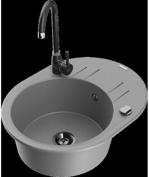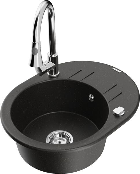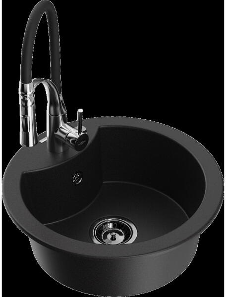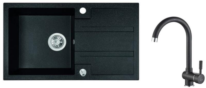 Laveo SZETT BARBADOS+ LETTE Gránit tálca + Álló csaptelep - Fekete