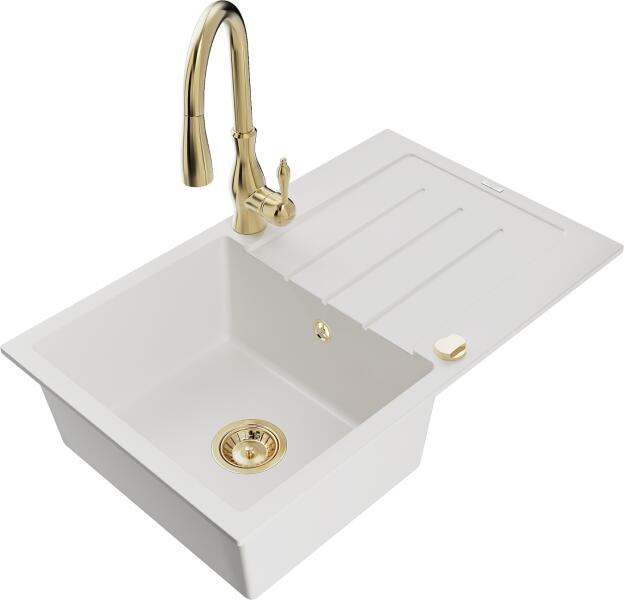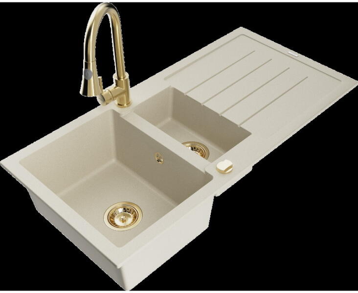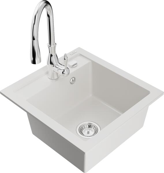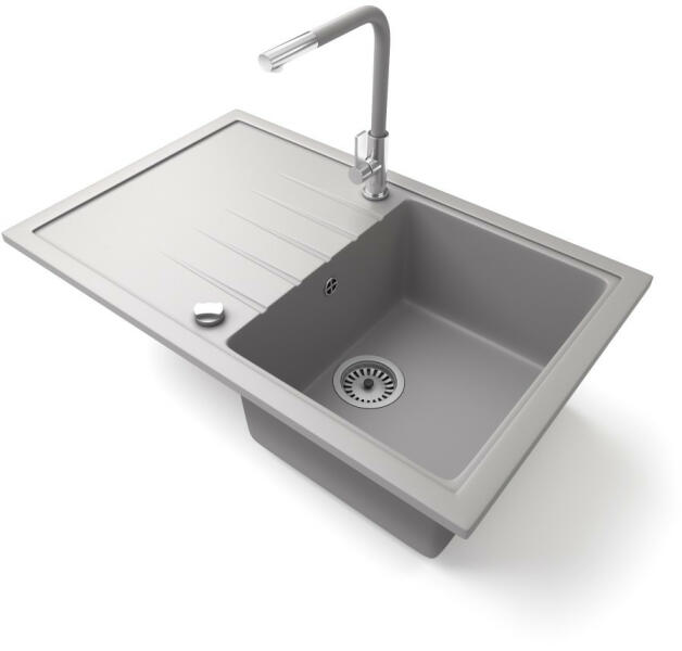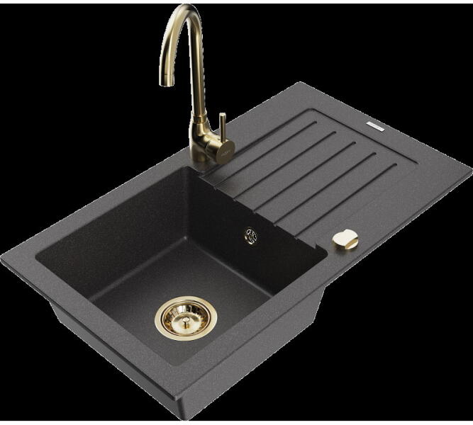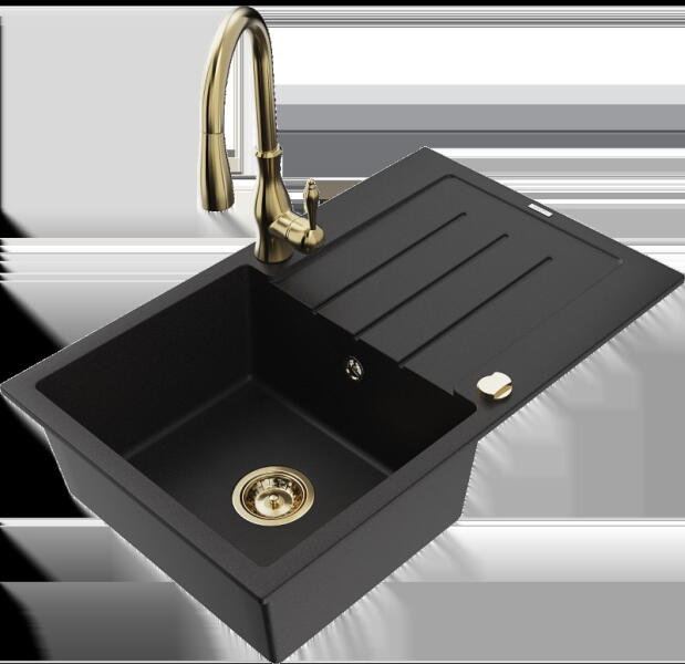 Gyártó: Mexen Sorozat: Bruno + Savita Mosogató: Mérete: 795x495x200 mm Kamra - mélység: 200 mm Kamra méretei: 440x360 mm Kimeneti átmérő: ø90 mm Típus: 1 kamrás csepegtetővel Mosogató típusa: a munkalapba való beágyazáshoz Anyaga: gránit (80% gránit adalékanyag 20% gyanta) Túlfolyó nyílás: Igen Lyukak: 2 (1 lyuk a mosogató csapjához, 1 lyuk az automatikus leeresztő csa