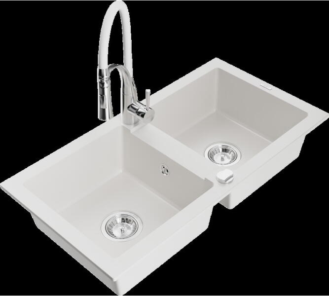 Gyártó: Mexen Sorozat: Mario + Savita Mosogató: Méretek: 820x436x161 mm Kamra - mélység: 151 mm Kamra méretei: 356x336 mm Kimeneti átmérő: ø90 mm Típus: 2 kamrás Mosogató típusa: a munkalapba való beágyazáshoz Anyaga: gránit (80% gránit adalékanyag 20% gyanta) Túlfolyó nyílás: Igen Lyukak: (1 lyuk a mosogató csaptelepéhez, 1 lyuk az automatikus leeresztő csavar szabály