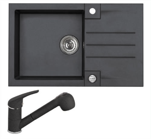 Alveus Rock 130 egymedencés csepptálcás gránit mosogató + Színazonos Alveus zuhanyfejes csaptelep Granital széria Különleges, kiváló minőségű kompozit anyagból készült mosogatómedence Egyedi megjelenés Munkalapra szerelhető modell 1 medencés + csepegtető tálcás Méret: 780 x 480 mm Medence mélység: 180 mm Minimum szekrény méret: 600 mm praktikus helytakarékos forma Aj