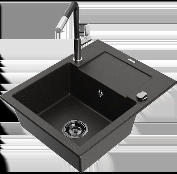 Leo konyhai mosogató: Gyártó: Mexen Sorozat: Leo Modell: 1-kamrás s csepegtetővel Hossza 900 mm Szélesség 500 mm Magasság: 190 mm Kamra mélysége: 180 mm Kamra mérete: 430x415 mm Alkalmas 500 mm-es szekrényekhez Szifon + automatikus leeresztő csavar Anyaga: gránit (80% gránit - kő, 20% gyanta) Sima felület a könnyű karbantartás érdekében: igen Megnövelt ellenállás az ütés