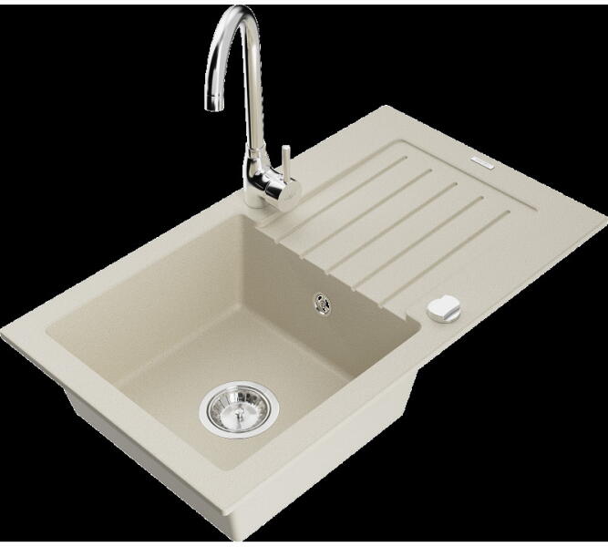 Mexen Milo konyhai mosogató: Gyártó: Mexen Sorozat: Milo Modell: 1 kamrás Beépítés: felülről a munkalapba süllyesztve Hossza 435 mm Szélesség 410 mm Magasság: 171 mm Kamra mélysége: 161 mm Kamra mérete: 375x280 mm Lefolyó átmérője: 90 mm Szifon + automatikus leeresztő csavar Anyaga: gránit (80% gránit - kő, 20% gyanta) Sima felület a könnyű tisztítás érdekében: igen
