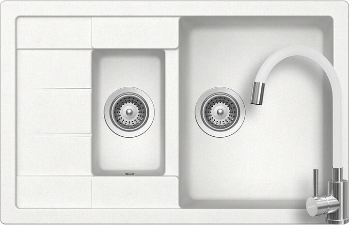 Schock Manhattan D-150S konyhai mosogatótálca Cristalite Alpina 780 x 500 mm, gránit, megfordítható, hagyományos beépítés, fehér munkalapba beépíthető, egy + félmedencés, csepegtetővel ellátott, megfordítható, ideálisan illeszkedik a minimum 60 cm-es alsószekrényhez. A csaptelep helye előre elkészített, könnyedén áttörhető. A csomagban találja a használati útmutat
