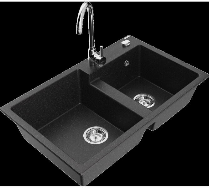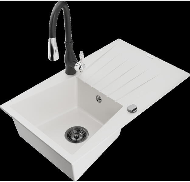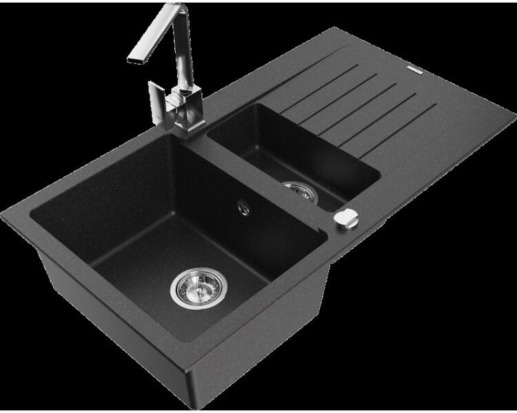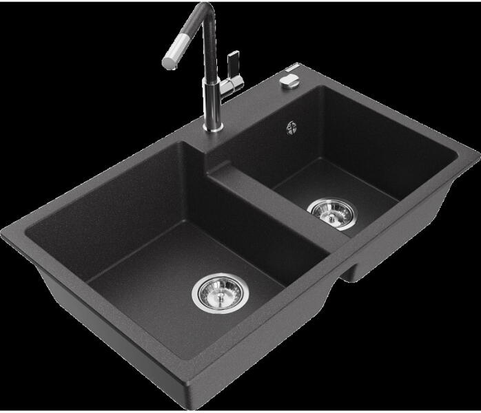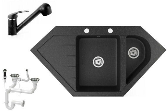 NERO Joker sarok mosogató, ami egyben praktikus és impozáns látványelem is a konyhában. Tökéletes választás azokba a konyhákba, ahol a mosogató rész a sarokban lett kialakítva. Szögletes, határozott vonalvezetése nagyszerűen illik modern vagy minimál stílusú konyhákba. A mosogatón 2 lyuk lett kialakítva, egy a csaptelepnek és egy a beépíthető mosogatószer adagolónak v