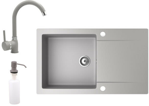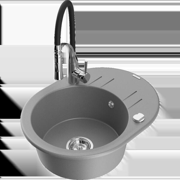 NERO Gold gránit mosogató szürke színben. Praktikus kialakítású egymedencés mosogató, kellő méretű csepegtető résszel. Modern letisztult formájával egy modern konyha tökéletes része lehet. Különlegessége hogy a csepegtető rész nem bordázott, így a minimál stílusú konyhákba is nagyszerű választás. A mosogatón 2 lyuk találhato egy a csaptelepnek és egy a beépíth
