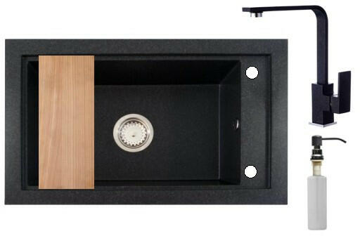 Panama gránit mosogató szemcsés fekete színben, extra nagy medencével. A teljes készlet tartalmazza a mosogatót, a csaptelepet, a szifonkészletet, a mosogatószer adagolót és egy vágódeszkát. A medence mérete 51,7 x 31,6 cm, amiben szinte bármilyen méretű edény elfér. Modern megjelenésű, letisztult szögletes formavilág jellemzi, kiváló eleme lehet egy minimál vagy modern
