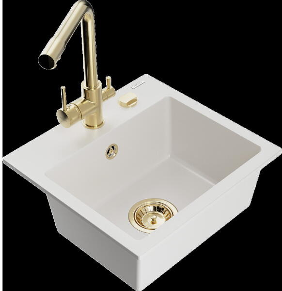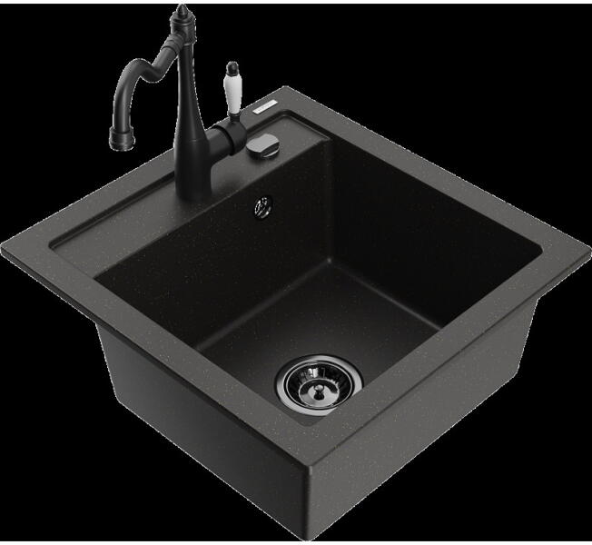Mexen Milo konyhai mosogató: Gyártó: Mexen Sorozat: Milo Modell: 1 kamrás Beépítés: felülről a munkalapba süllyesztve Hossza 435 mm Szélesség 410 mm Magasság: 171 mm Kamra mélysége: 161 mm Kamra mérete: 375x280 mm Lefolyó átmérője: 90 mm Szifon + automatikus leeresztő csavar Anyaga: gránit (80% gránit - kő, 20% gyanta) Sima felület a könnyű tisztítás érdekében: igen