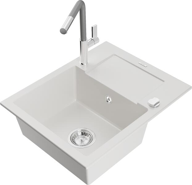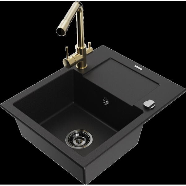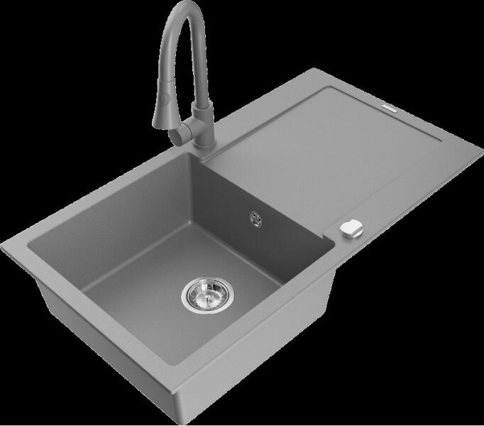 Mexen Elias konyhai mosogató: Gyártó: Mexen Sorozat: Elias Modell: 1 kamrás Beépítés: felülről a munkalapba süllyesztve Méretek: 795x480x200 mm Kamra mélysége: 190 mm Kamra mérete: 465x420 mm Lefolyó átmérője: 90 mm Szifon + automatikus leeresztő csavar Anyaga: gránit (80% gránit - kő, 20% gyanta) Sima felület a könnyű tisztítás érdekében: igen Megnövelt ellenállás