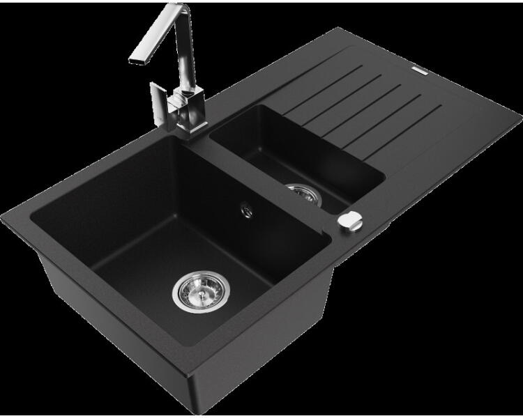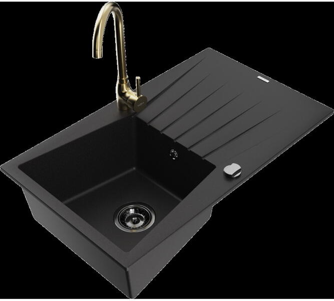 Mexen Milo konyhai mosogató: Gyártó: Mexen Sorozat: Milo Modell: 1 kamrás Beépítés: felülről a munkalapba süllyesztve Hossza 435 mm Szélesség 410 mm Magasság: 171 mm Kamra mélysége: 161 mm Kamra mérete: 375x280 mm Lefolyó átmérője: 90 mm Szifon + automatikus leeresztő csavar Anyaga: gránit (80% gránit - kő, 20% gyanta) Sima felület a könnyű tisztítás érdekében: igen