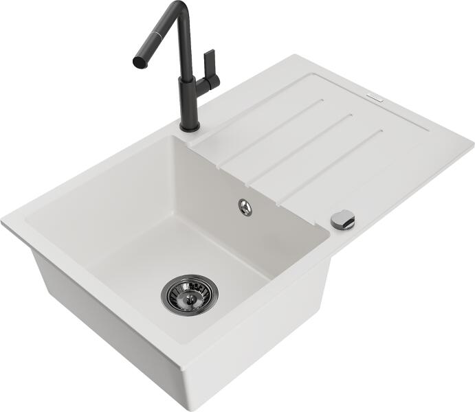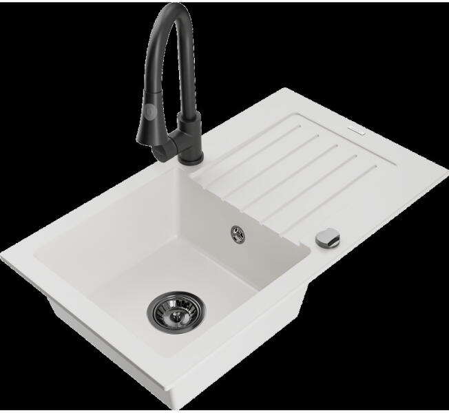 Mexen Bruno konyhai mosogató: Gyártó: Mexen Sorozat: Bruno Modell: 1 kamrás Beépítés: felülről a munkalapba süllyesztve Méretek: 795x495x200 mm Kamra mélysége: 190 mm Kamra mérete: 440x360 mm Lefolyó átmérője: 90 mm Szifon + automatikus leeresztő csavar Anyaga: gránit (80% gránit - kő, 20% gyanta) Sima felület a könnyű tisztítás érdekében: igen Megnövelt ellenállás