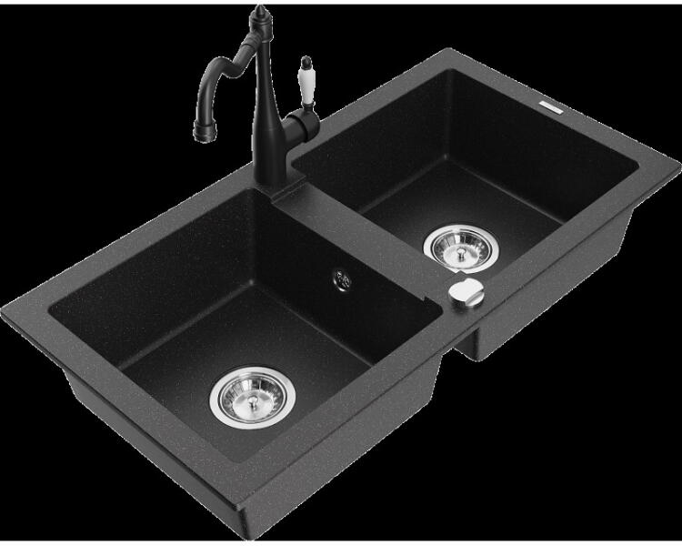 Tomas konyhai mosogató: Gyártó: Mexen Sorozat: Tomas Modell: 2-kamrás csepptálca nélkül Beépítés: felülről a munkalapba süllyesztve Hossz: 800 mm Szélesség: 500 mm Magasság: 190 mm Kamra mélysége: 180 mm (nagyobb), 180 mm (kisebb) Kamra mérete: 440x387 mm (nagyobb), 370x303 mm (kisebb) A lefolyó átmérője: Ø 90 mm Szifon + automatikus leeresztő csavar Anyaga: gránit (80% g