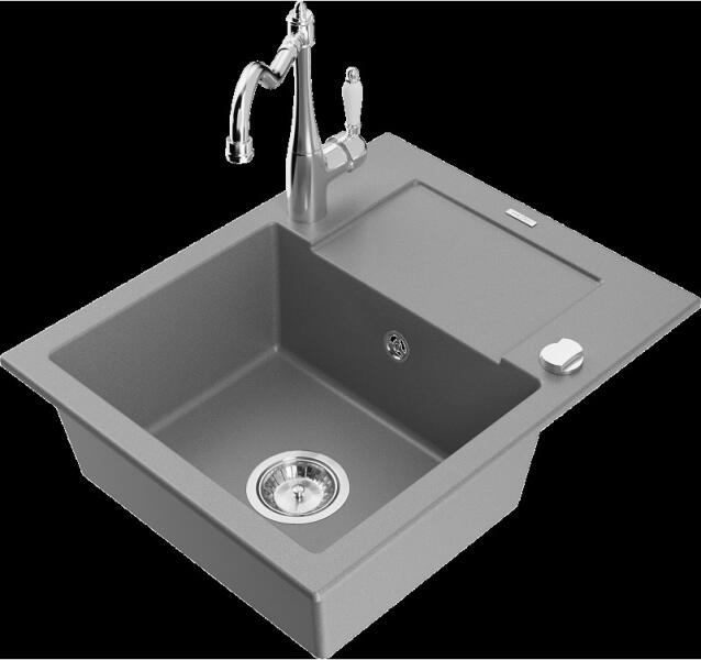 Mexen Bruno, 1 kamrás gránit mosogató csepptálcával 80x50 cm konyhai csaptelep Telma, szürke, 6513-71-670200-71 Mosogató: Termékkód: 6513791010-71 Mérete: 795x495x200 mm Kamra mélysége: 200 mm Kamra méretei: 440x360 mm Lefolyó átmérője: ø90 mm Típus: 1 kamrás csepptálcával Típus: Az asztallapba süllyesztett Szín: Szürke Anyaga: gránit (80% gránit adalékanyag 20% gyanta