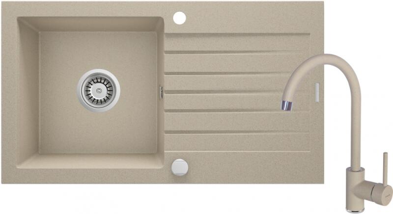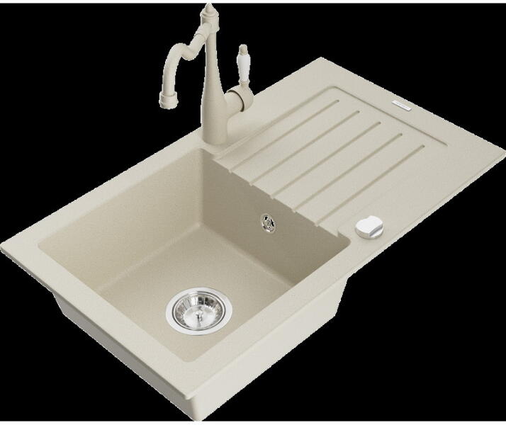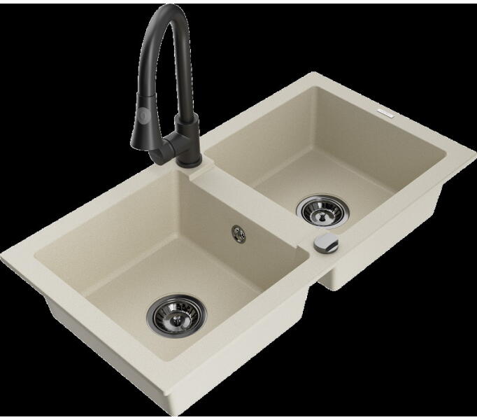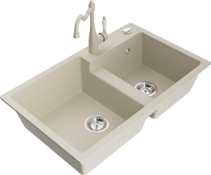 Mexen Tomas, gránit mosogató 800x500x190 mm, 2 kamrás és mosogató csaptelep Carla, bézs, 6516-69-670700-69 A konyhai mosogató műszaki adatai: Gyártó: Mexen Sorozat: Tomas Modell: 2-kamrás csepptálca nélkül Beépítés: a munkalapba való beágyazáshoz Szín: bézs Felületkezelés: sima Hossza 800 mm Szélesség 500 mm Magasság: 190 mm Kamra mélysége: 180 mm (nagyobb), 180 mm (k