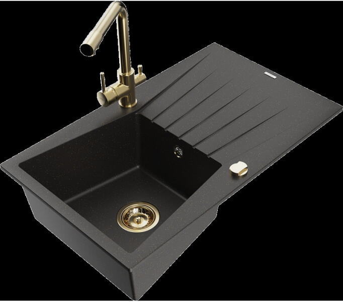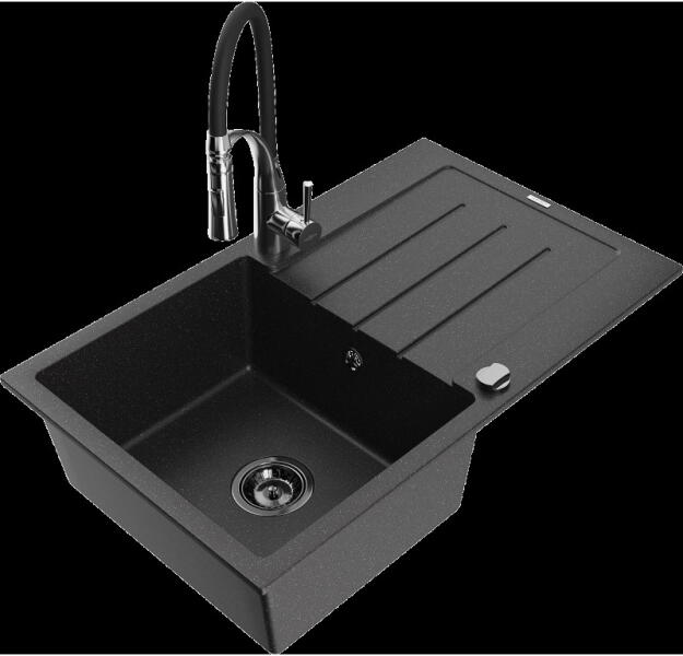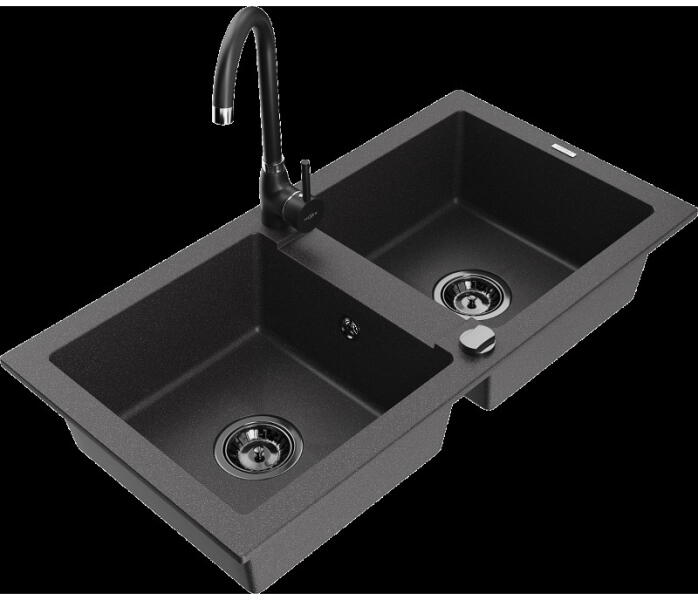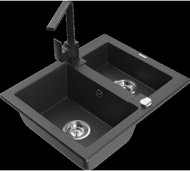 Mexen Tomas, gránit mosogató 800x500x190 mm, 2 kamrás és Savita mosogató csaptelep, fekete foltos, 6516-76-672601-00 A konyhai mosogató műszaki adatai: Gyártó: Mexen Sorozat: Tomas Modell: 2-kamrás csepptálca nélkül Beépítés: a munkalapba való beágyazáshoz Szín: fekete foltos Felület: sima Hossza 800 mm Szélesség 500 mm Magasság: 190 mm Kamra mélysége: 180 mm (nagyobb),