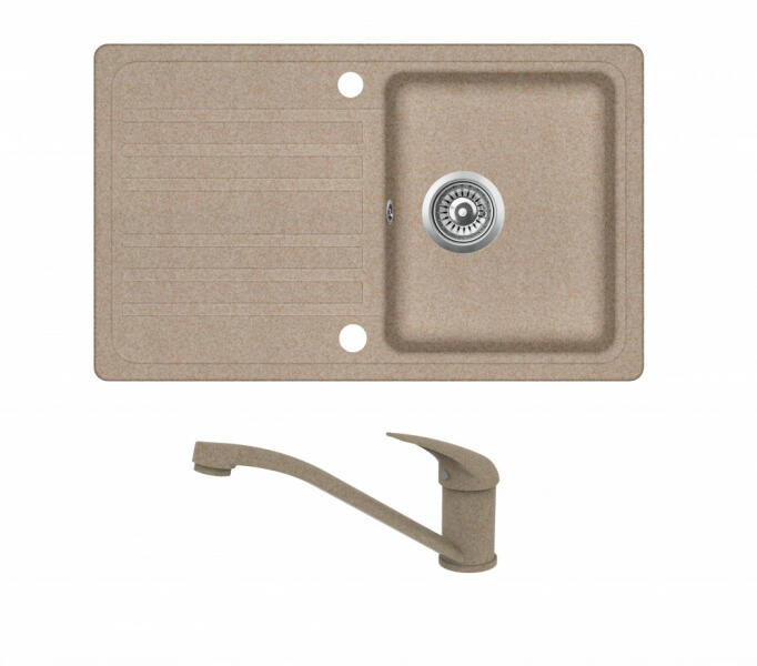 EVIDO Home 45S gránit mosogató avena EVIDO PINGUIN álló gránit csapteleppel EVIDO Home 45S gránit mosogatótálca avena színben. Jellemzők: Forgatható elrendezés. Hagyományos beépítés felülről. 45 cm-es szekrényméret. Két csaplyukkal. Méret: 765 x 460 / 190 mm. Bűzelzáró szifon nem alaptartozék. Alaptartozék: lefolyógarnitúra. Opcionális tartozék: lefolyó távműködt