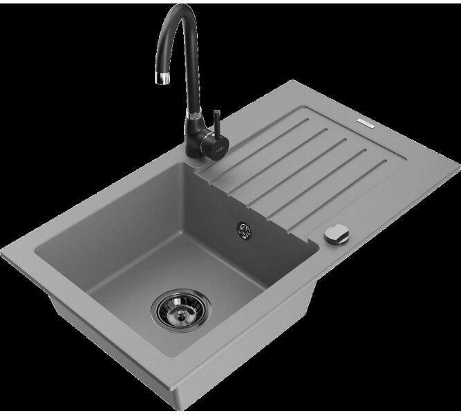 NERO Malta gránit mosogató, ami egyesíti a praktikus megoldást a bőséges helykínálattal és a harmonikus designnal. Méretes, 36 x 38 cm-es, medencével és kellően nagy csepegtető résszel rendelkezik, arányosan kialakítva. Minden igényt kielégít ami egy mosogatótól elvárható, amihez mindössze 78 cm hely szükséges. Egyenes és hajlított vonalvezetés harmonikus keveréke je