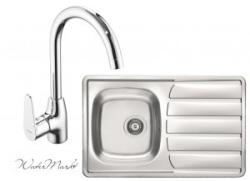 Alveus ZOOM-20 beépíthető mosogatótálca + Ferro íves csaptelep Mosogató: Egymedencés Csepptá lcás Rozsdamentes acél Anyagvastagság 0,6 mm Min. szekrény méret : 450 mm Medence mélység: 155 mm Méret : 790 x 500 x 155 mm Csaplyuk: nincs kivágva Csaptelep: Kerámia szabályozó Egylyukas beszerelés kerámia vezérlőegység vízsugár szabályozó M24x1 elforgatható kifolyó flexib