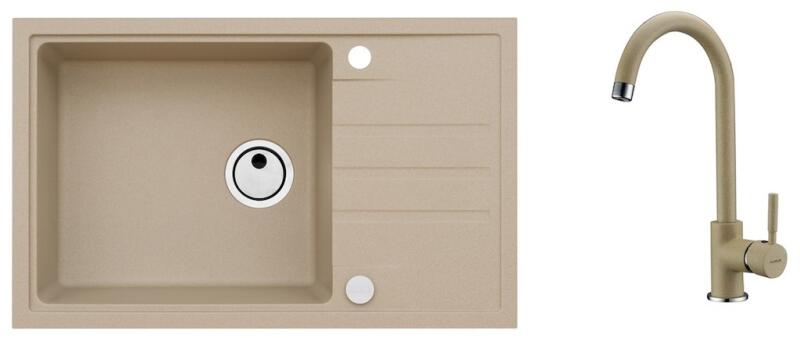 Mexen Tomas, 2 kamrás gránit mosogató 800x500x190 mm és konyhai csaptelep Duo, bézs, 6516-69-671701-07 A konyhai mosogató műszaki adatai: Gyártó: Mexen Sorozat: Tomas Modell: 2-kamrás csepptálca nélkül Felszerelés: munkalapra Szín: bézs Felületkezelés: sima Hossza 800 mm Szélesség 500 mm Magasság: 190 mm Kamra mélysége: 180 mm (nagyobb), 180 mm (kisebb) Kamra mérete: 440x38